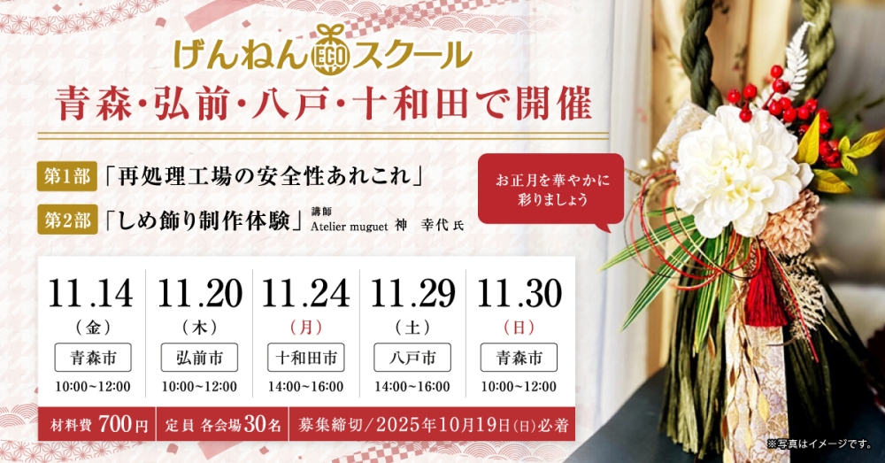 げんねんECOスクールに関するお問い合わせ・お申込後のキャンセルは必ずお電話『017-731-1563』でお願いします。受付時間:平日9時~17時 ※休館日を除く